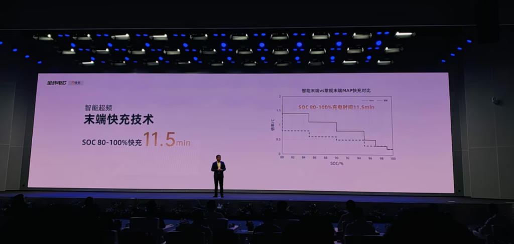 Standard EV batteries often slow down significantly when they reach 80% charge to protect the cells. Jiyao Energy has optimized the 80%โ100% SOC (State of Charge) charging curve, reducing the time for this final stretch to just 11.5 minutes. This is a 75% improvement in speed compared to competing products.